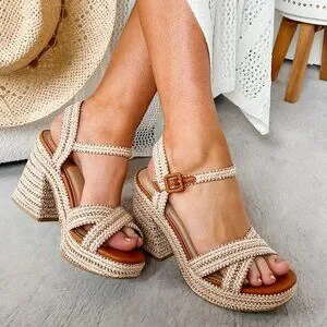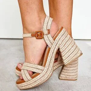 Ooh, these sandals are giving us major summer vibes! They have a chunky platform heel for a little extra height, but they're still walkable thanks to the comfy padded insole. You'll love the strappy open-toe design and the woven raffia upper adds a natural touch. Plus, the adjustable ankle strap keeps them secure all day long. Perfect for a night out or a day spent exploring!