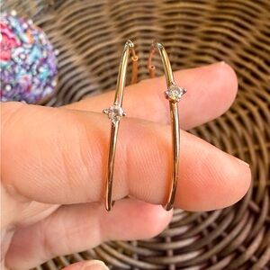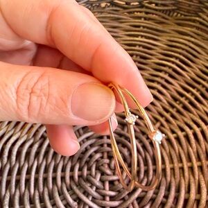 14K Rose Gold Hoop Earrings with Cubic Zirconia Accent - Women Jewelry