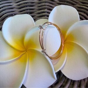 Elegant 14K Rose gold-tone hoop earrings with sparkling cubic zirconia accents. Lightweight and polished for everyday wear. Classic gold color adds warmth to any outfit.