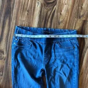 These Liverpool Blue Jeggings offer a sleek and comfortable fit, perfect for any occasion. Crafted in a vibrant blue hue, they provide a streamlined silhouette that enhances your style effortlessly. Ideal for both casual and semi-formal settings, these jeggings are a versatile wardrobe staple. Size 8P, measurements included.