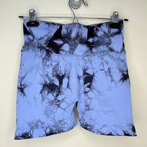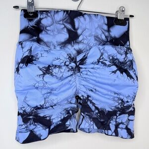 Blue & Black Tie-Dye Scrunch Butt Biker Compression Shorts Lifting & Slimming
