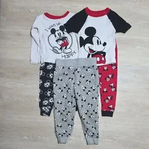 Adorable Disney pajama set featuring Mickey Mouse. Includes vibrant red, black, gray, and white colors. Perfect for cozy nights.