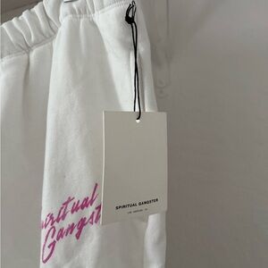 NWT Spiritual Gangster 100% Cotton White Joggers with Pink Retro Logo