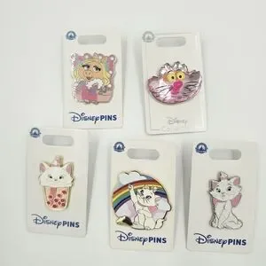 Cute and nostalgic Disney character enamel pin set featuring beloved characters from The Aristocats, Alice in Wonderland, and The Muppets. This set is perfect for Disney pin collectors, Disney Parks traders, and Disney character enthusiasts.