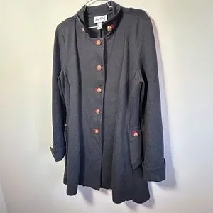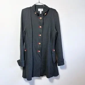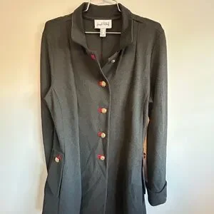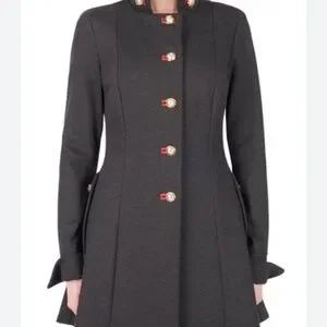 Joseph Ribkoff Military Coat, 3/4 length, Charcoal with red accents Size 12