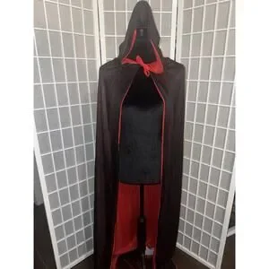 Halloween Reversible Black Red Cosplay Costume Hooded Masquerade Party Cape 63”