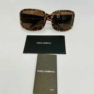Dolce & Gabbana Leopard Oversized Sunglasses Gold Temple Made Italy w/ Case
