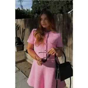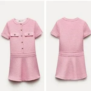 ZARA TEXTURED TWEED DRESS PINK Size M