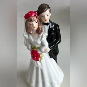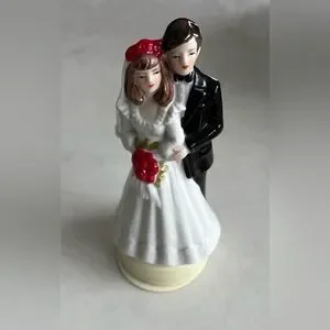 Vintage Bride and Groom Cake Topper. Nice detail. It also has a base to insert into the cake for added stability.