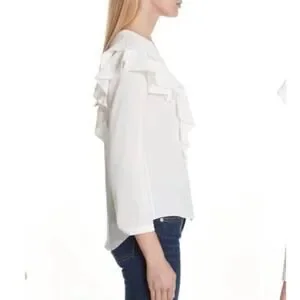 Veronica Beard Ivory Ruffle Shoulder Blouse Size 8