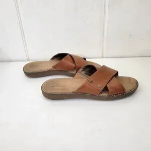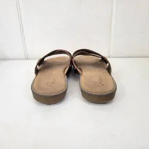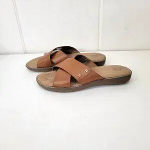 A2 By Aerosoles Women's Brown Slide Sandals With Faux Leather Cross Straps & Cus