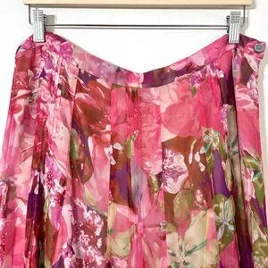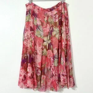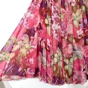 Jones New York Silk Chiffon Pink Floral Skirt 35"W Flowy Fairy Romantic Feminine