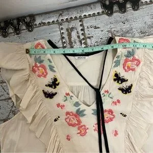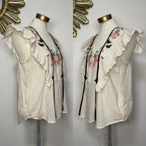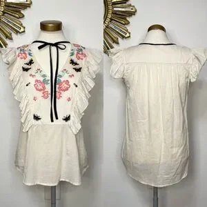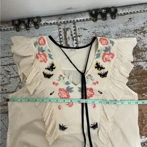 St. Roche Embroidered Floral Ruffle Sleeveless Top
