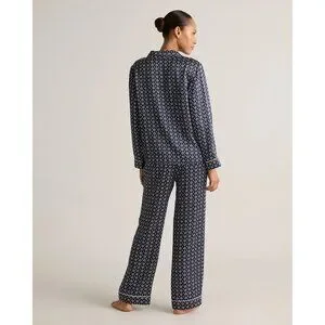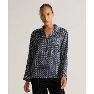 NWT Quince 100% washable silk navy blue tiny diamonds long sleeve pajama top
