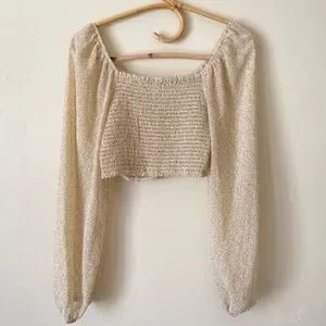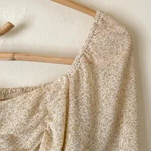 NWT Altar’d State Floral Cropped Cream Ivory Gold Blouse Top