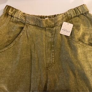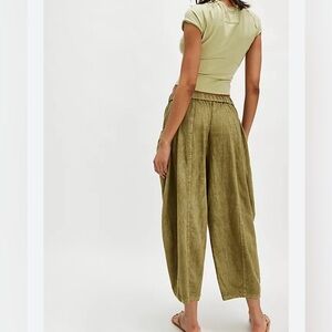 Free People High Road Solid Olive Green Pull-On Barrel Pants Size Large NWT