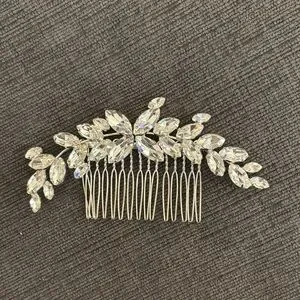 Add a touch of elegance to your look with this stunning silver crystal hair comb. Perfect for special occasions like weddings. Great for brides.