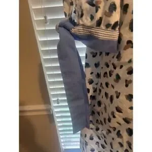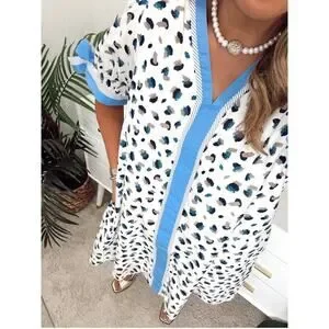 A playful animal pattern, bow tie detail, and short sleeves make this lightweight mini dress perfect for any occasion. Featuring a contrasting stripe trim, V-neck, and convenient side pockets, it is both stylish and functional. Fully lined and non-sheer, it is made from a soft woven fabric.