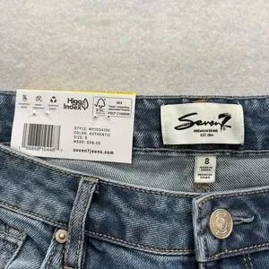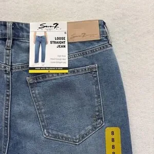 Seven7 Loose Straight Jeans Womens 8 Blue Medium Wash High Rise Stretch Baggy