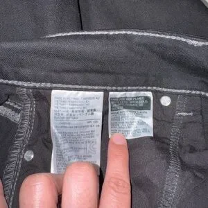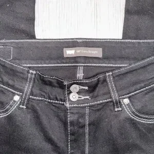 Classic black Levi's straight-leg jeans. Clean lines with contrast stitching. Versatile piece for casual or dressed-up looks. Durable denim for everyday wear.