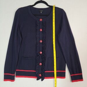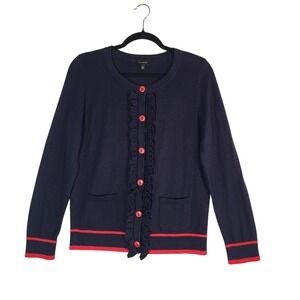 Talbots Nautical Anchor Cardigan Navy Ruffle Cotton Cashmere Sweater M Preppy