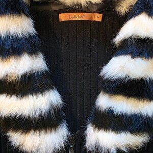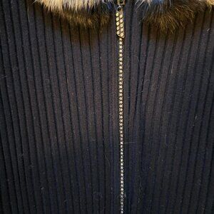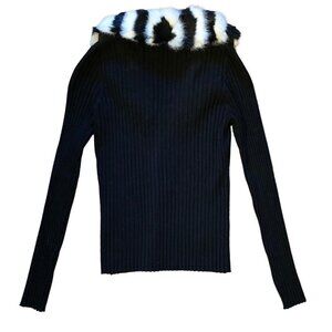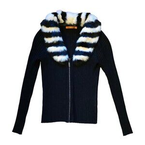 🖤 Vintage Belldini Faux Fur Collar Ribbed Zip-Up Sweater – Size M 🖤