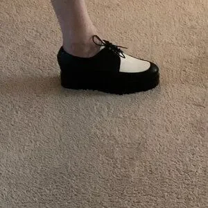 Chic two-tone design with a glossy platform. Lace-up style for a modern look.