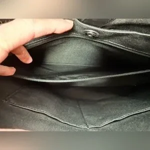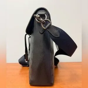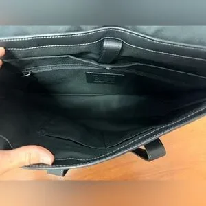* Design: A slim, functional business bag with a square outline and a signature pattern.