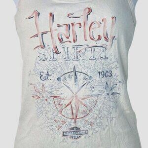 Vintage Harley Spirit Womens Crossbones White Graphic Ribbed Tank Top SM Y2k
