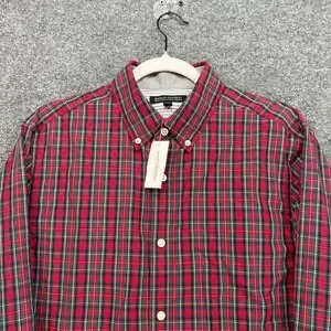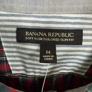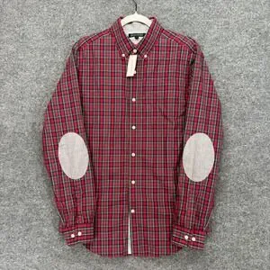 Banana Republic Button Down Shirt Mens Medium Red Elbow Patch Plaid Slim Fit NEW