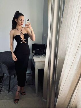 ZARA Black Cut-Out Midi Dress with Appliqué Bloggers Favourite Maxi Summer