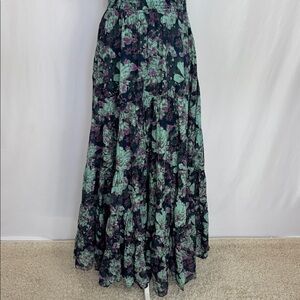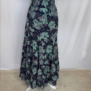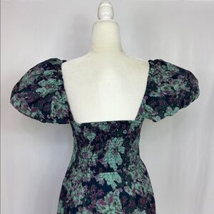 Free People Floral Sundrenched Short Sleeve Maxi Dress Navy Blue Green Size M