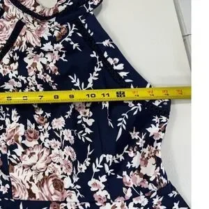 B. Darlin Navy Floral Halter Skater Dress Crochet Trim I56FJ478 Size 7/8