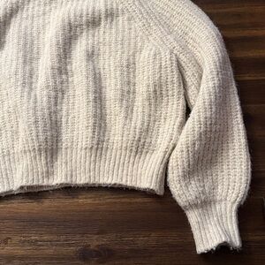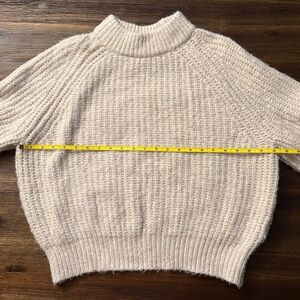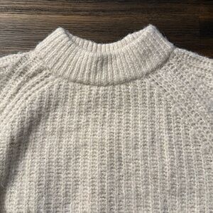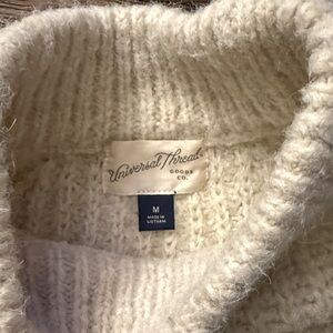 Universal Thread cream color thick knit sweater. Mock neckline, long wide sleeves. Size medium. Good used condition, no holes or stains