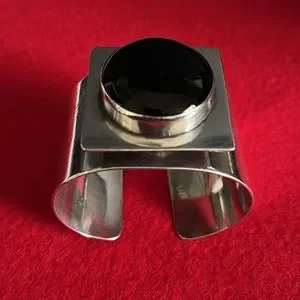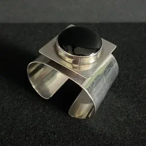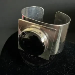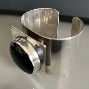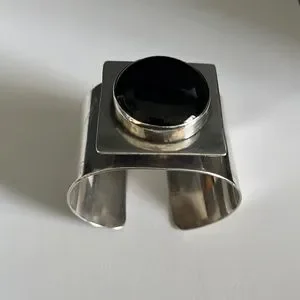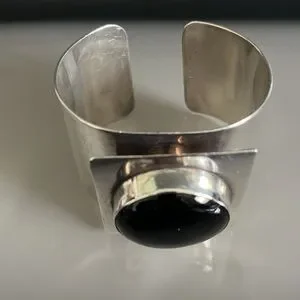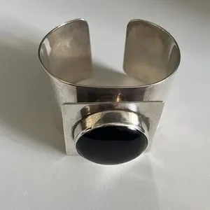 Mary Kay Sterling Silver Vintage Modernist Onyx Cuff Bracelet