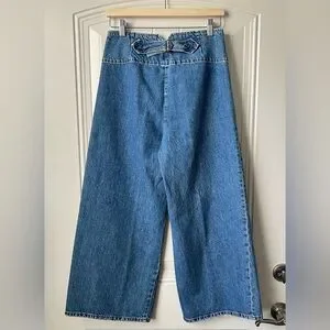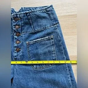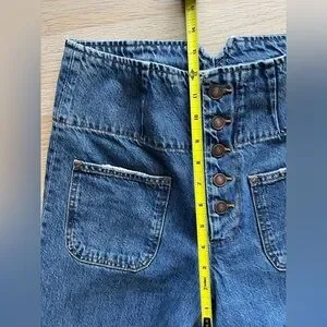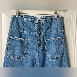 Free People Wide Leg High Rise Button Fly Jeans Size 27 Sailor Style Denim