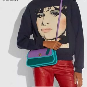Coach Colorblock Leather Top Handle Satchel in Purple and Teal