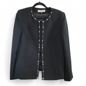 Tahari Luxe Black Blazer Jacket With Beads Size 12
