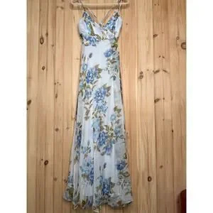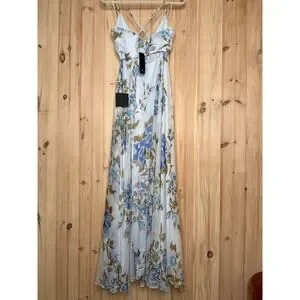 NWT Lulus Oh-So Romantic Pale Blue Floral Print Sleeveless Wrap Maxi Dress Sz S