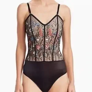 Brand new Wolford bustier with intricate floral embroidery. Boning
