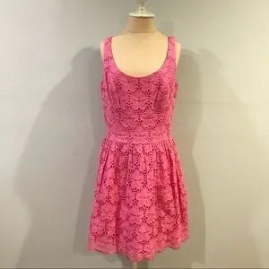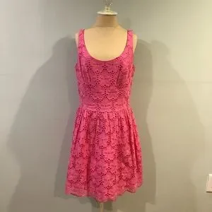 Lilly Pulitzer Pink Floral Eyelet Sleeveless Dress. Sleeveless dress, fully lined with invisible back zip closure. Bust: 18.5”, length: 36”.