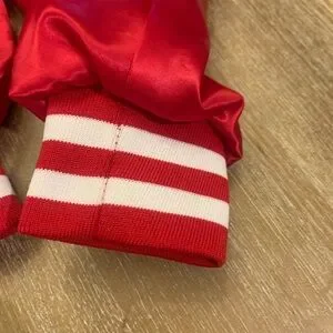 Stylish and vibrant, this Firestone bomber jacket is perfect for any casual outing. The bold red color adds a pop of color to your wardrobe. The jacket is preloved in good condition. There is a small white mark on one of the sleeves shown in the picture