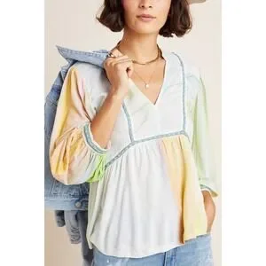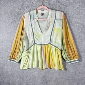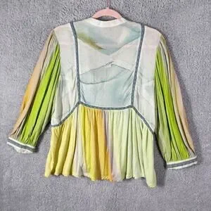 Anthro Bl^nk London Renata Tie Dye Top Size M Multicolor V-Neck Puff Sleeve Boho