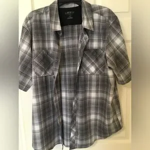 Orvis Men's Short Sleeve Button Up Tech Shirt Spread Collar Pockets Gray Plaid