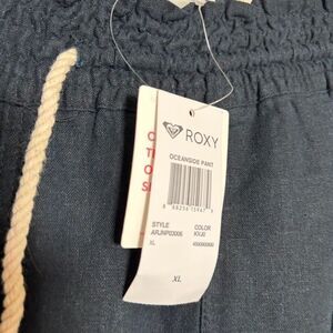 Roxy Pants Women's XL Black Linen Blend Drawstring Summer Beach Solid NWT