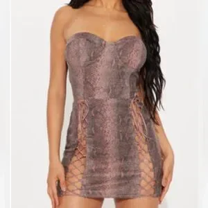 New with Tags Party/Festival strapless dress with mauve snake print. Features lace-up sides for a bold look. Ideal for a night out!