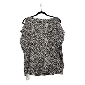 Sophisticated blouse with a striking black and white pattern. Ideal for versatile styling.
