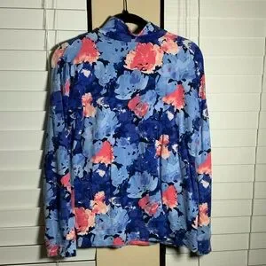 Fabletics Blue and Pink Floral Quarter-Zip Sweatshirt