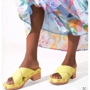 Charlotte Stone Amos Studded Platform Clog Sandals Chartreuse Yellow Size 7