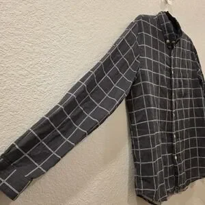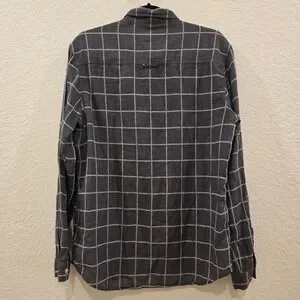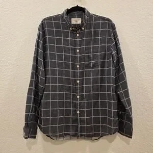 Folk Mens Windowpane Check Button Down Shirt Charcoal Grey Cotton Size 4 L